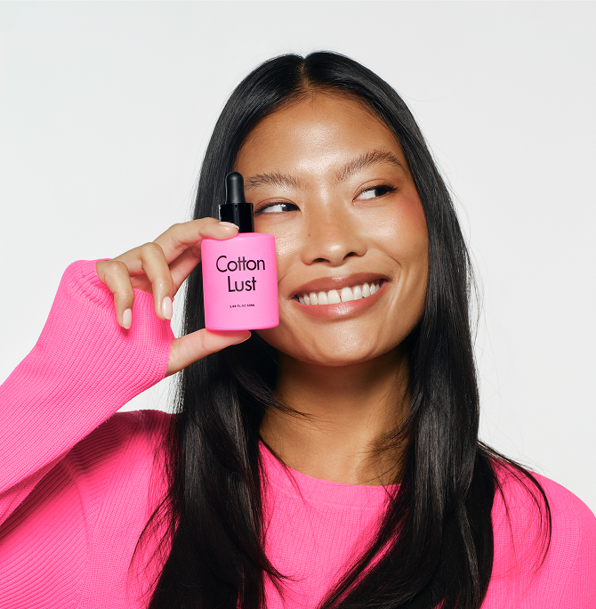 Once your hair has been washed, remove excess water with a towel. Then, dry your hair naturally or with a hairdryer. Apply 3 drops of Cotton Lust to the palm of your hand and distribute evenly from the middle to the ends of your hair.