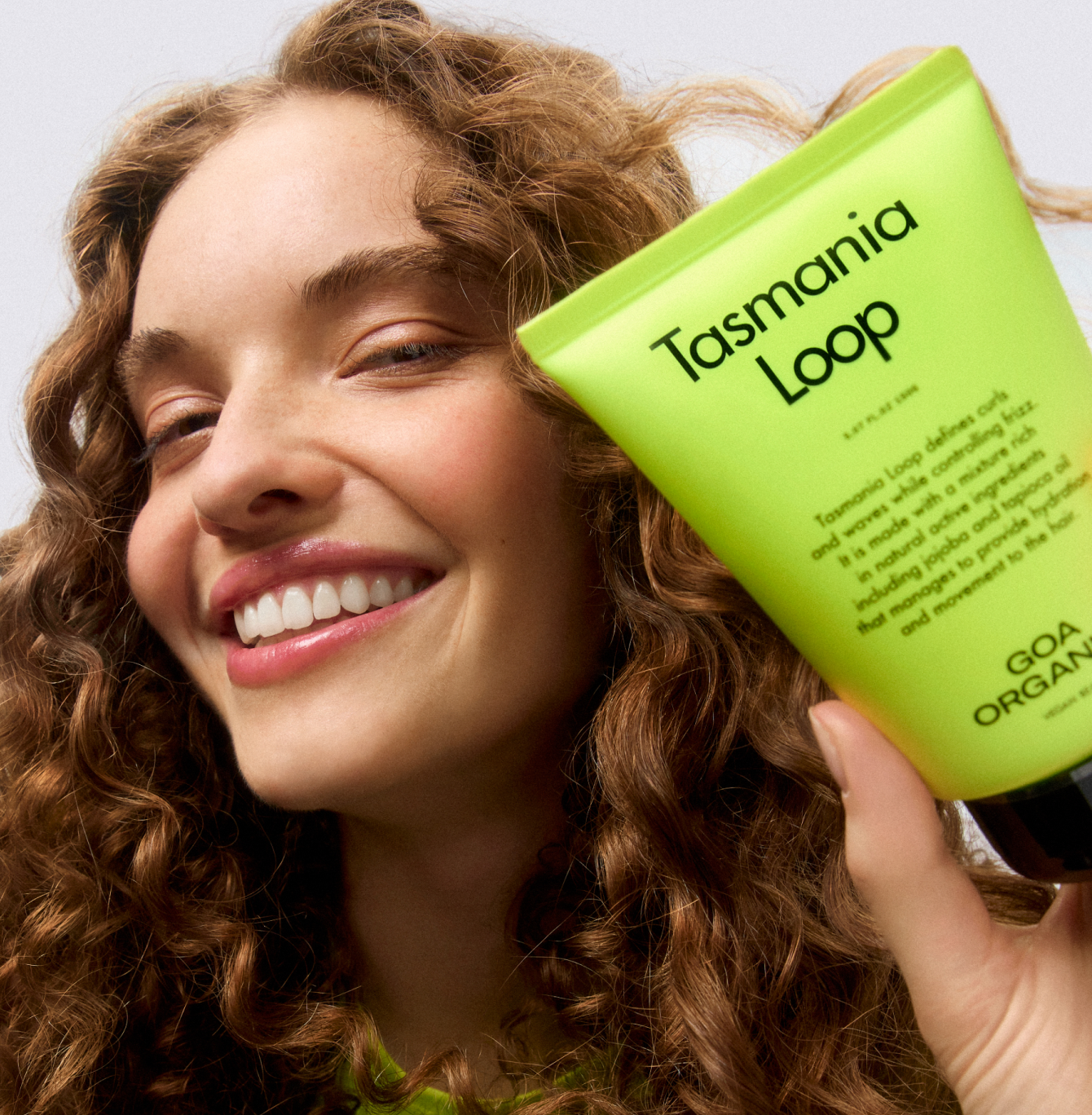 Once your hair has been washed, remove excess water with a towel. With semi-damp hair, apply a small amount of Tasmania Loop to the palm of your hand and spread evenly from mid-lengths to ends. Shape your curls with your hand. You can dry naturally or with the help of a diffuser.