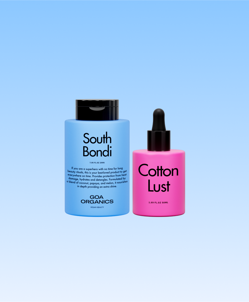 I due prodotti per tutti i tipi di capelli che non dovrebbero mai mancare nella vostra routine, insieme in un'unica confezione: South Bondi, un balsamo leave-in che protegge i capelli dal calore termico e li districa, fornendo allo stesso tempo idratazione, lucentezza e controllo del crespo in modo rapido ed efficace, e Cotton Lust, un siero per capelli leggero e a rapido assorbimento, formulato per sigillare le doppie punte e combattere la mancanza di lucentezza con un profumo unico.