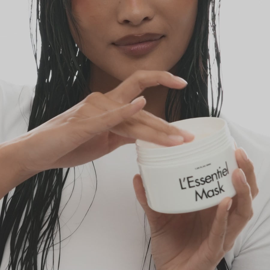 Una vez lavado el cabello retira el exceso de agua con una toalla. Aplica una pequeña cantidad de L’Essentiel mask en la palma de tu mano. A continuación, separa el cabello en dos partes para poder llegar a todo el cabello, divide en pequeñas secciones y masajea mechón a mechón. Aplica de medios a puntas a partir de unos tres centímetros del nacimiento del cabello, es importante dejar actuar la mascarilla al menos 10 minutos, aunque si tienes tiempo déjala actuar más para potenciar sus beneficios. Finalmente, aclara con abundante agua hasta que no queden restos del producto en el cabello.