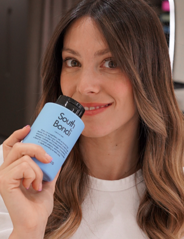 Una vez lavado el cabello, retirar el exceso de agua con una toalla. Con el pelo semi húmedo, aplicar una pequeña cantidad de South Bondi en la palma de la mano y repartir uniformemente de medios a puntas. Peinar y desenredar el cabello, y secar al aire o con la ayuda de un secador.